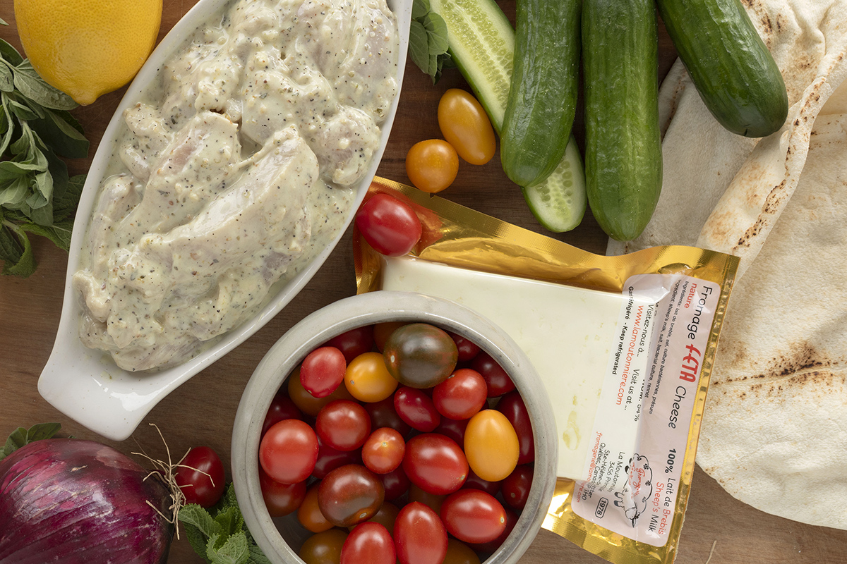Essayez cette recette avec le fromage féta de la fromagerie de la Moutonnière! Il possède une pâte très blanche à la texture onctueuse et friable. Ses arômes de lait frais laissent découvrir des saveurs lactiques, acidulées et finement piquantes. Ce fromage est disponible à la boutique de la Laiterie Charlevoix.