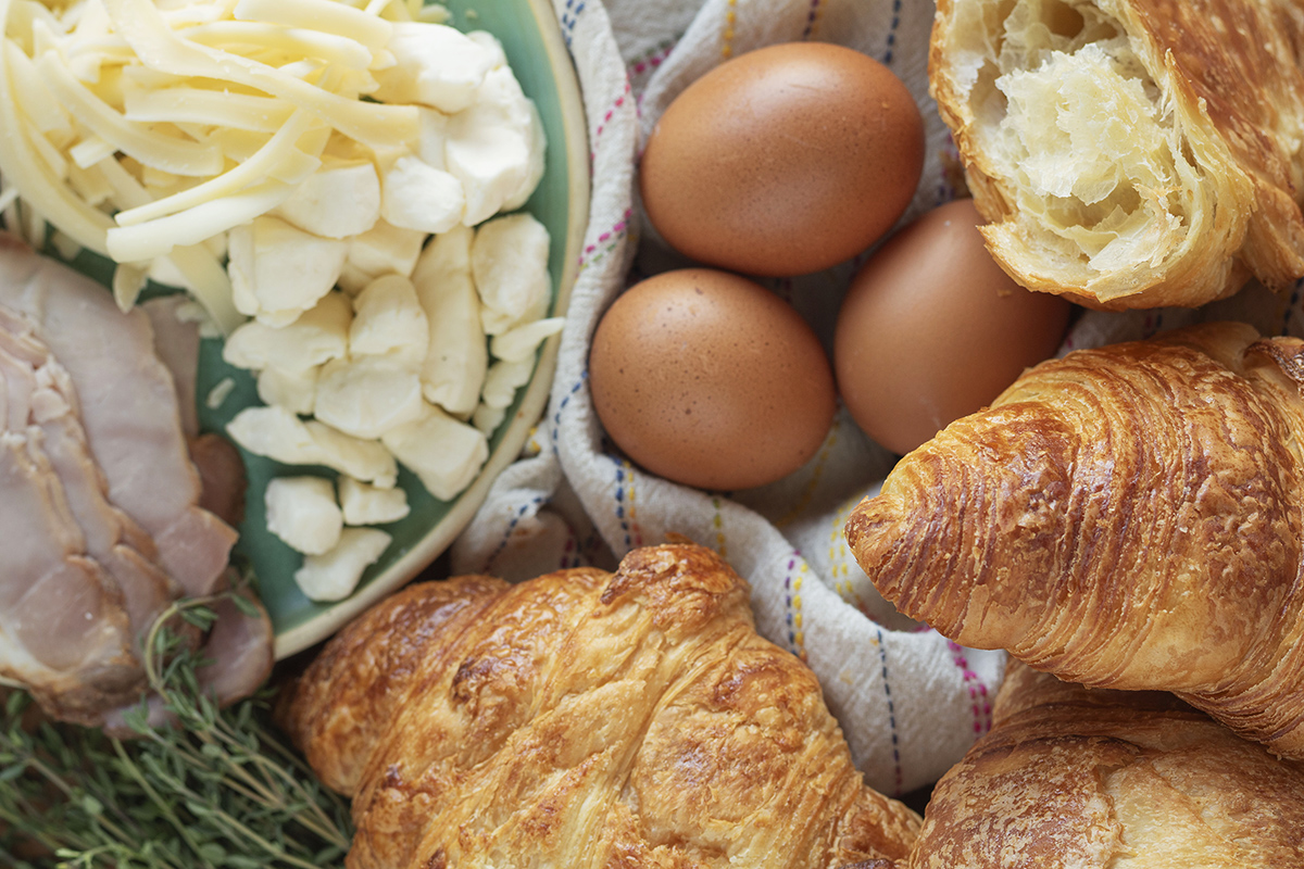 Casserole-déjeuner croissants, jambon et fromages