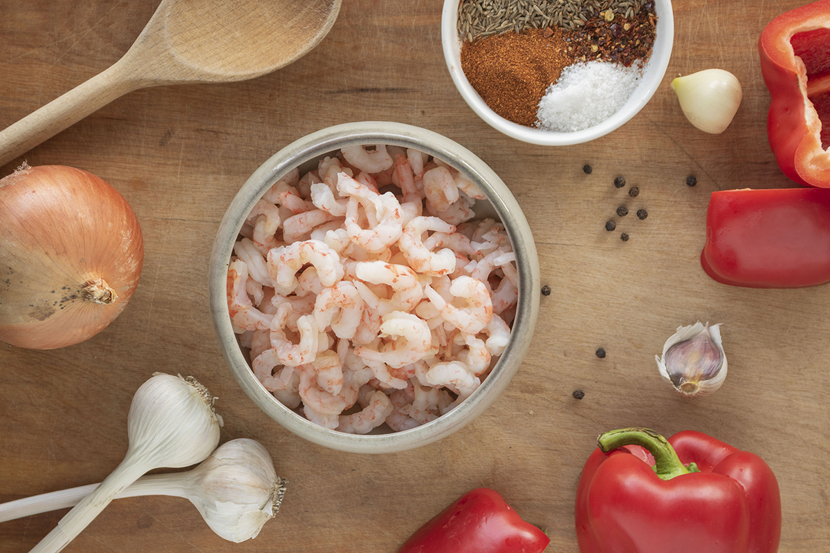 Cette version, que nous partagent Mariem et Ghazi, propriétaires de Fraîcheurs Méditerranéennes, comprend des oignons, du poivron rouge, de l’ail et des épices merveilleusement parfumées. En toute fin de cuisson, les crevettes nordiques sont ajoutées à la sauce frémissante juste le temps qu’elles se réchauffent et s’imprègnent de toutes les saveurs. À déguster avec un bout de pain frais pour ne rien laisser de la sauce !